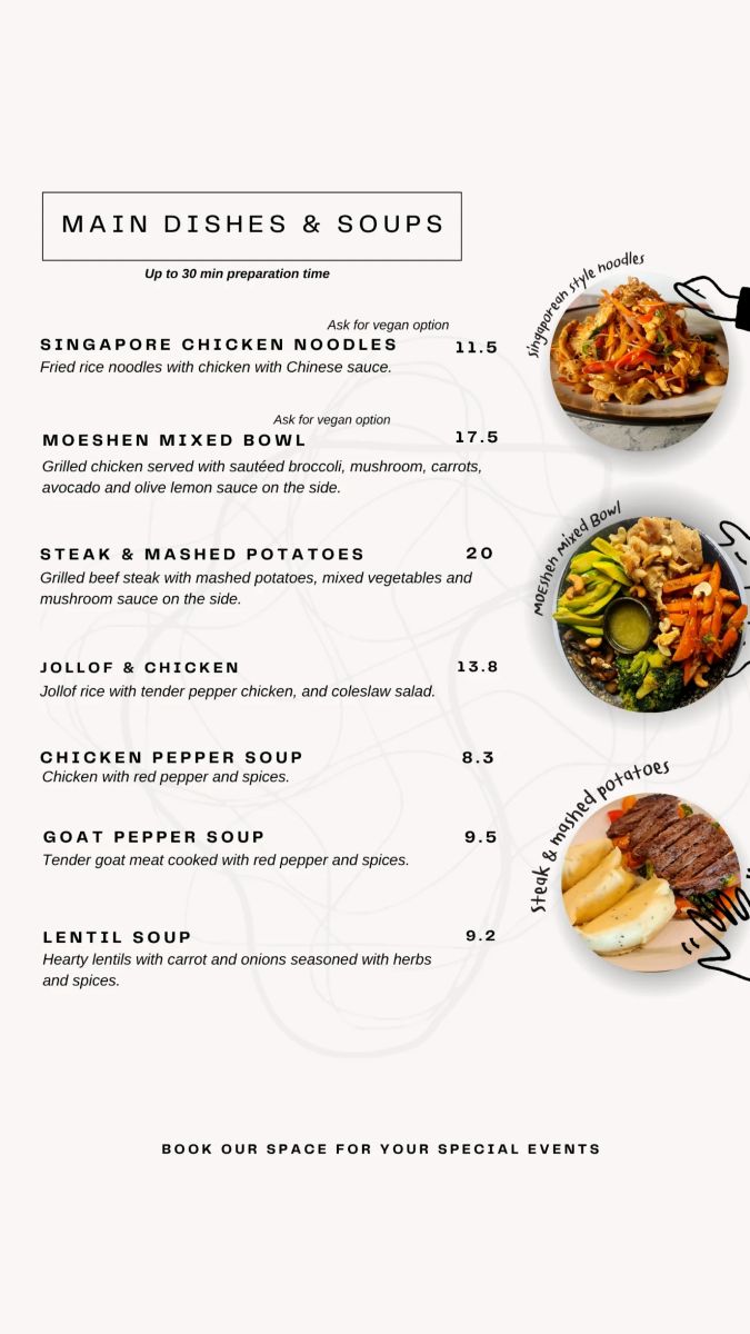 • Coffee, Cocktails & Cuisine: Enjoy signature drinks, crafted coffee, and generous platters.