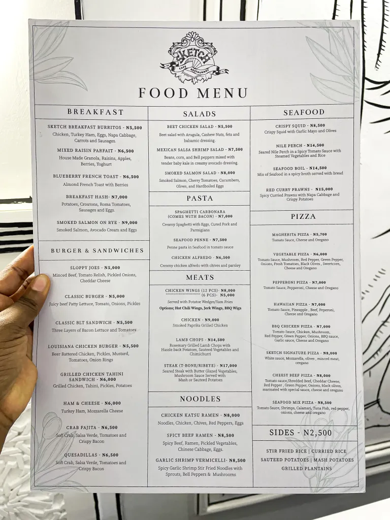 Nestled in the vibrant city of Abuja, Sketch Restaurant, also known as Sketch Cafe and Restaurant, is not just a place to dine; it’s an immersive journey into the world of art, culture, and exquisite intercontinental cuisine. From its unique artistic ambiance to a diverse menu that tantalizes taste buds, Sketch Restaurant stands out as a culinary canvas that captivates both locals and visitors alike.
