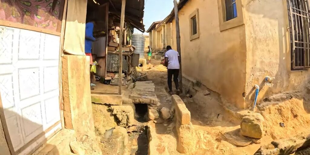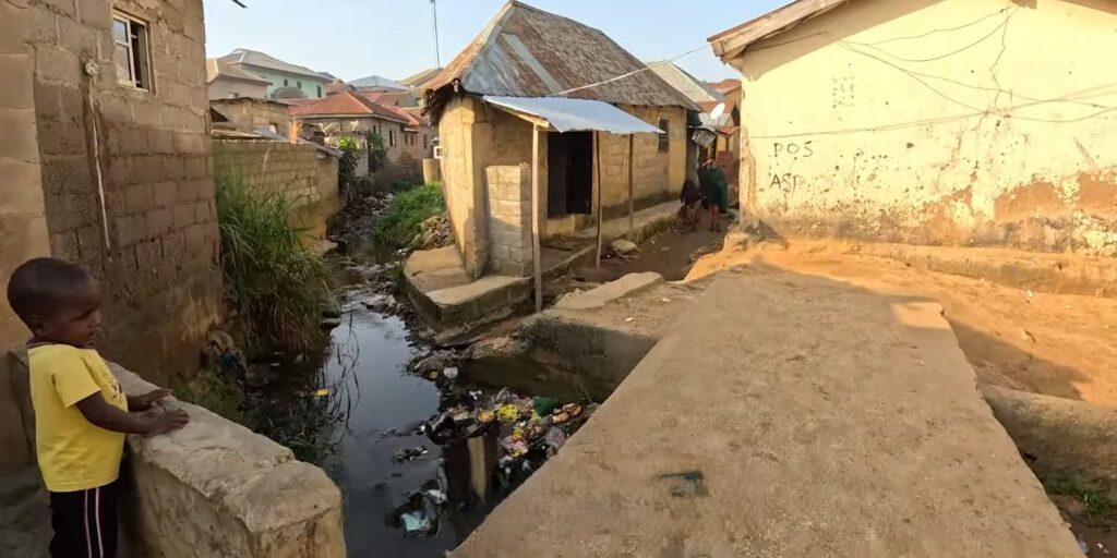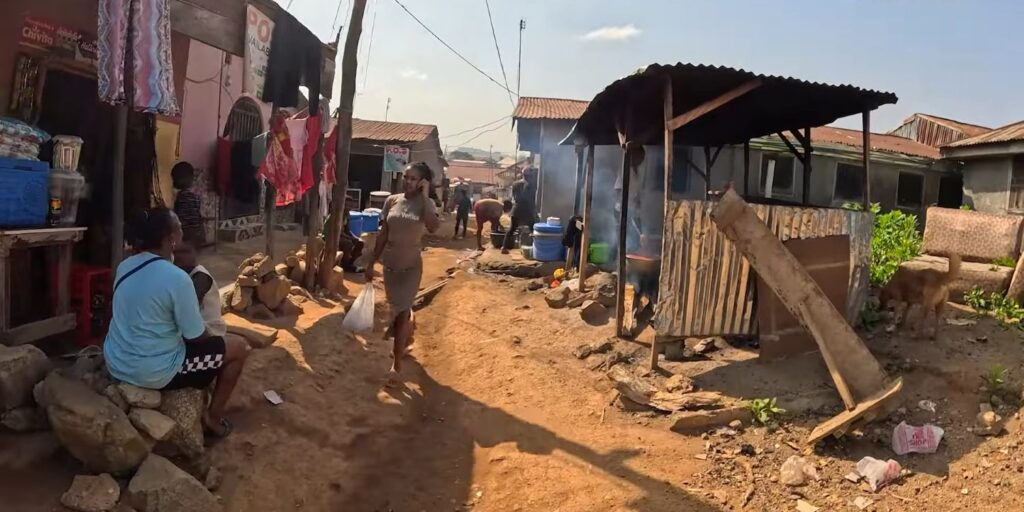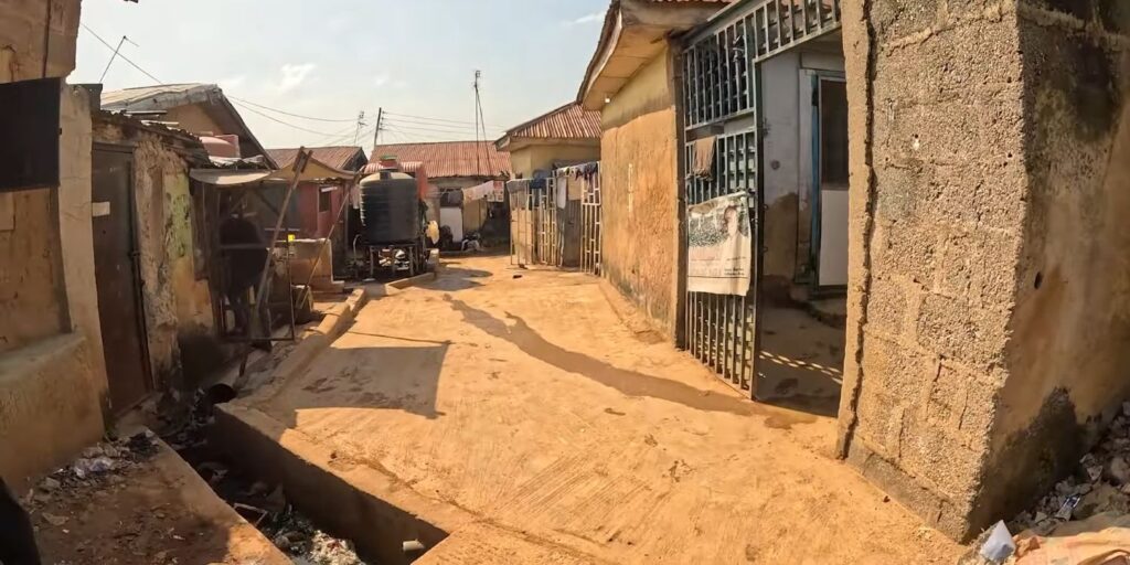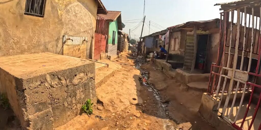 With over 1 million residents packed into a single neighborhood, Mpape has become the largest informal settlement in Abuja. The irony? This densely populated community sits directly opposite Maitama district, separated only by the 10-lane Murtala Mohammed Expressway – a stone’s throw from one of Nigeria’s wealthiest neighborhoods.